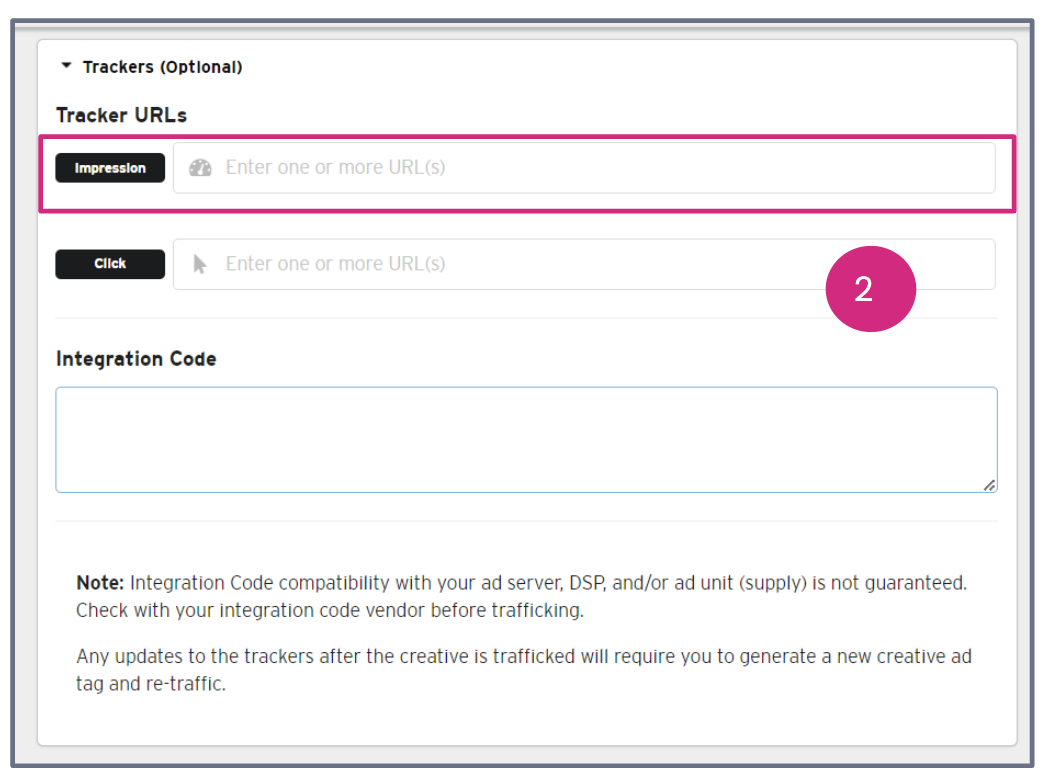 - Add the Impression Tracker to be applied to all the slides. To learn more about impression trackers, click here