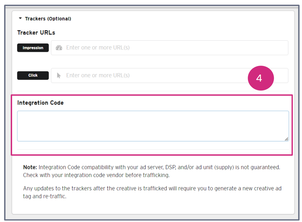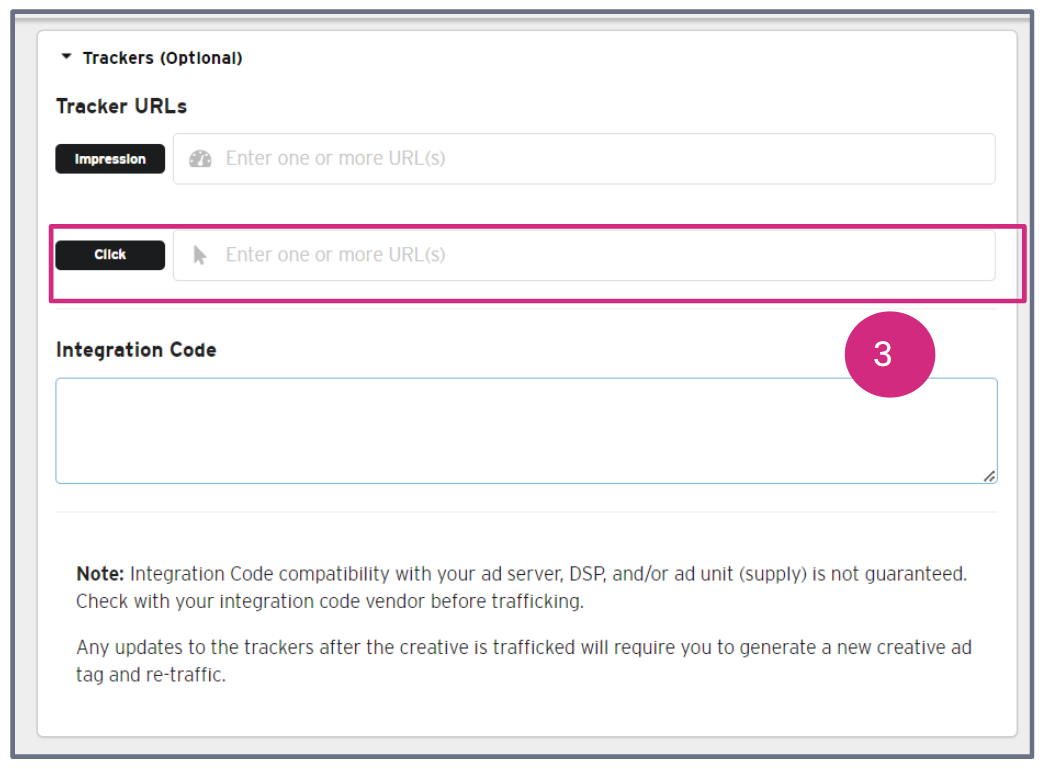 Note: You can add different Click Trackers per slide; to track clicks on each slide but cannot add an Impression tracker per slide. This is by design since the DSP impressions only count for the whole ad and not per slide.