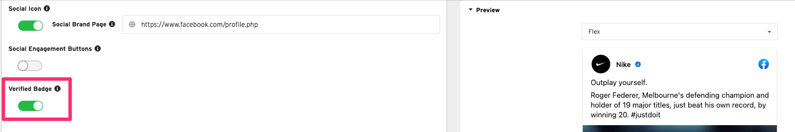 - If you have imported creative from a Social Media account that has a Verified badge, we suggest turning on the Verified Badge option in Nova UI for your social post creative. This will help ensure that your verified status is reflected accurately in your campaigns.
