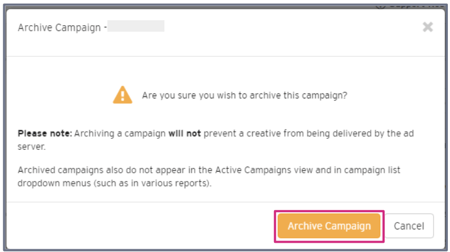 Caution: Archiving a campaign will not prevent a creative from being delivered by the ad server
