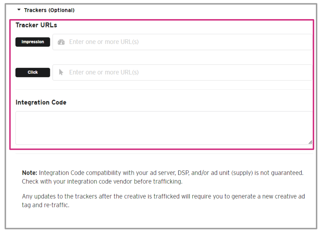 Please refer to the following articles regarding implementing click, impression, and viewability trackers in the Nova UI