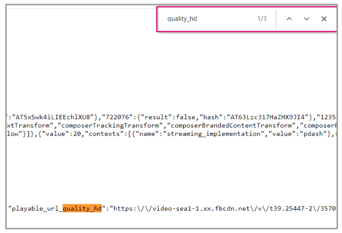 - Copy the link next to playable_url_quality_hd with Ctrl+C on Windows and Command+C on Mac