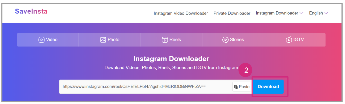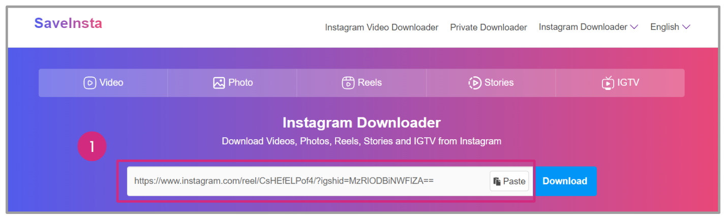- Copy (Ctrl+C or Command+C) and paste (Ctrl+V or Command+V) the desired Instagram link into the search bar