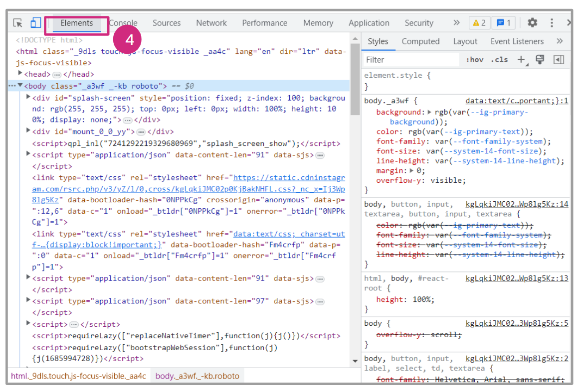 - Click inside the Elements window