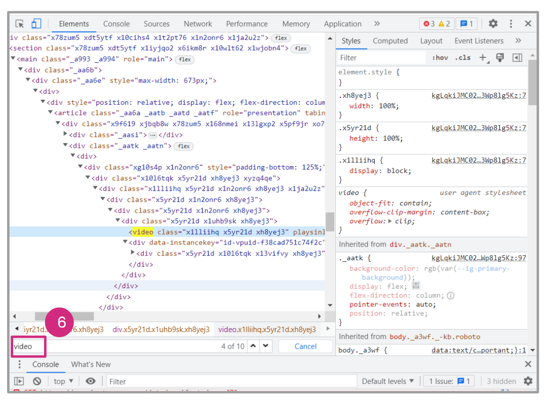 - In the highlighted video class, look for src