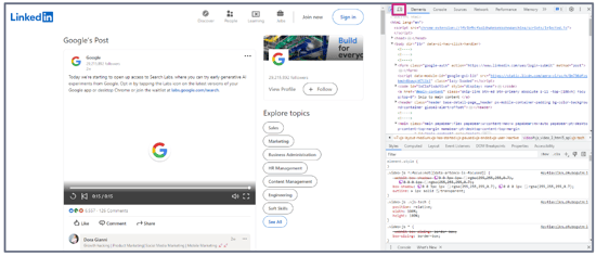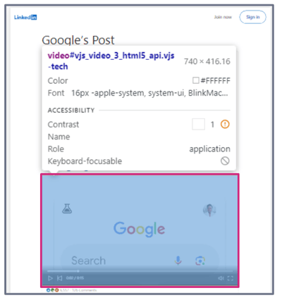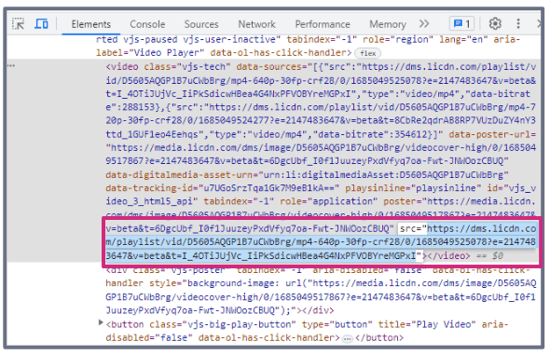 - Right-click on the individual post page of the LinkedIn video and select Inspect