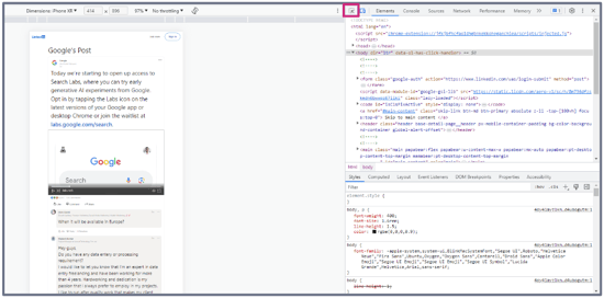 - Refresh the page and click the select icon next to the devices icon (Ctrl+Shift+C)