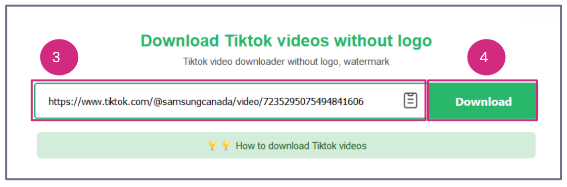 - Paste the URL into the field (SaveTik used in example)