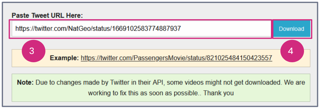 - Paste the URL into the field (Twitter Video Downloader used in example)