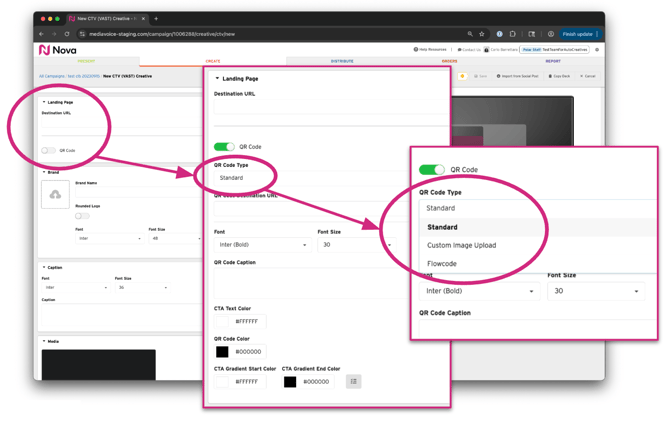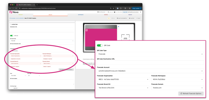 Once the initial setup is complete, you can begin building CTV creatives with Flowcodes directly in the Nova platform.
