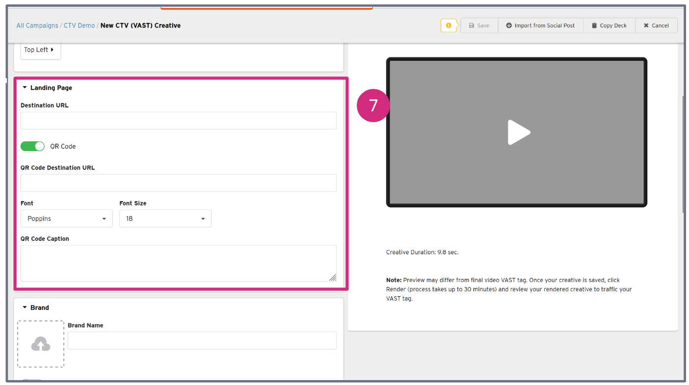 - To customize QR codes under any CTV creative, navigate to the QR Code section of the creative.