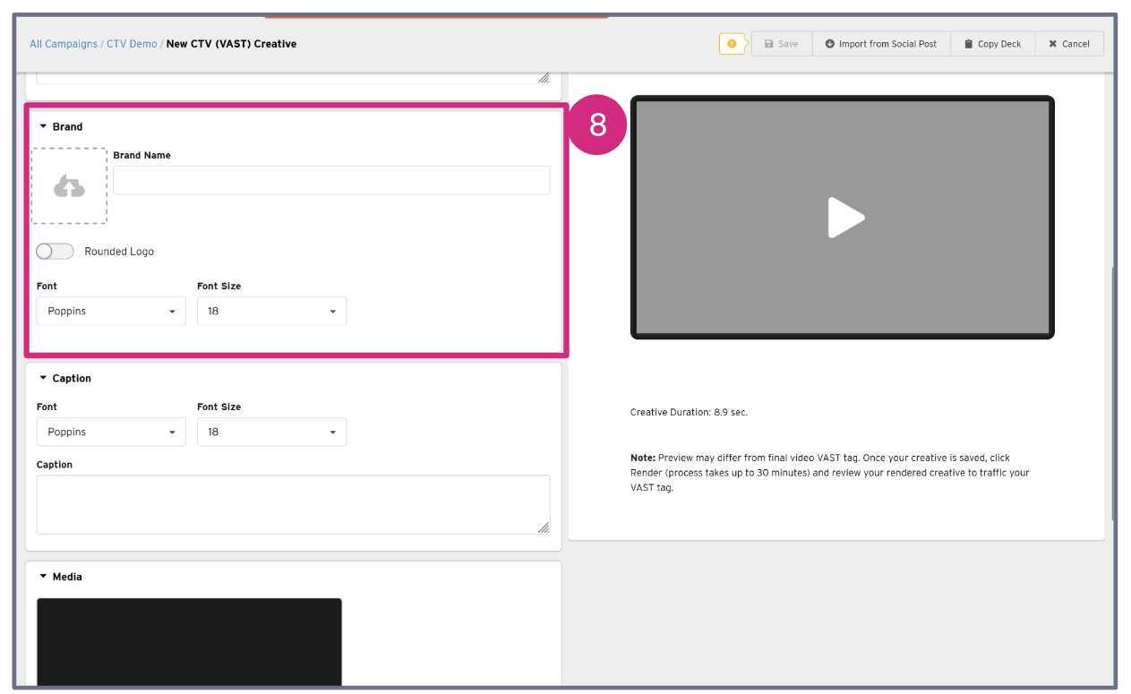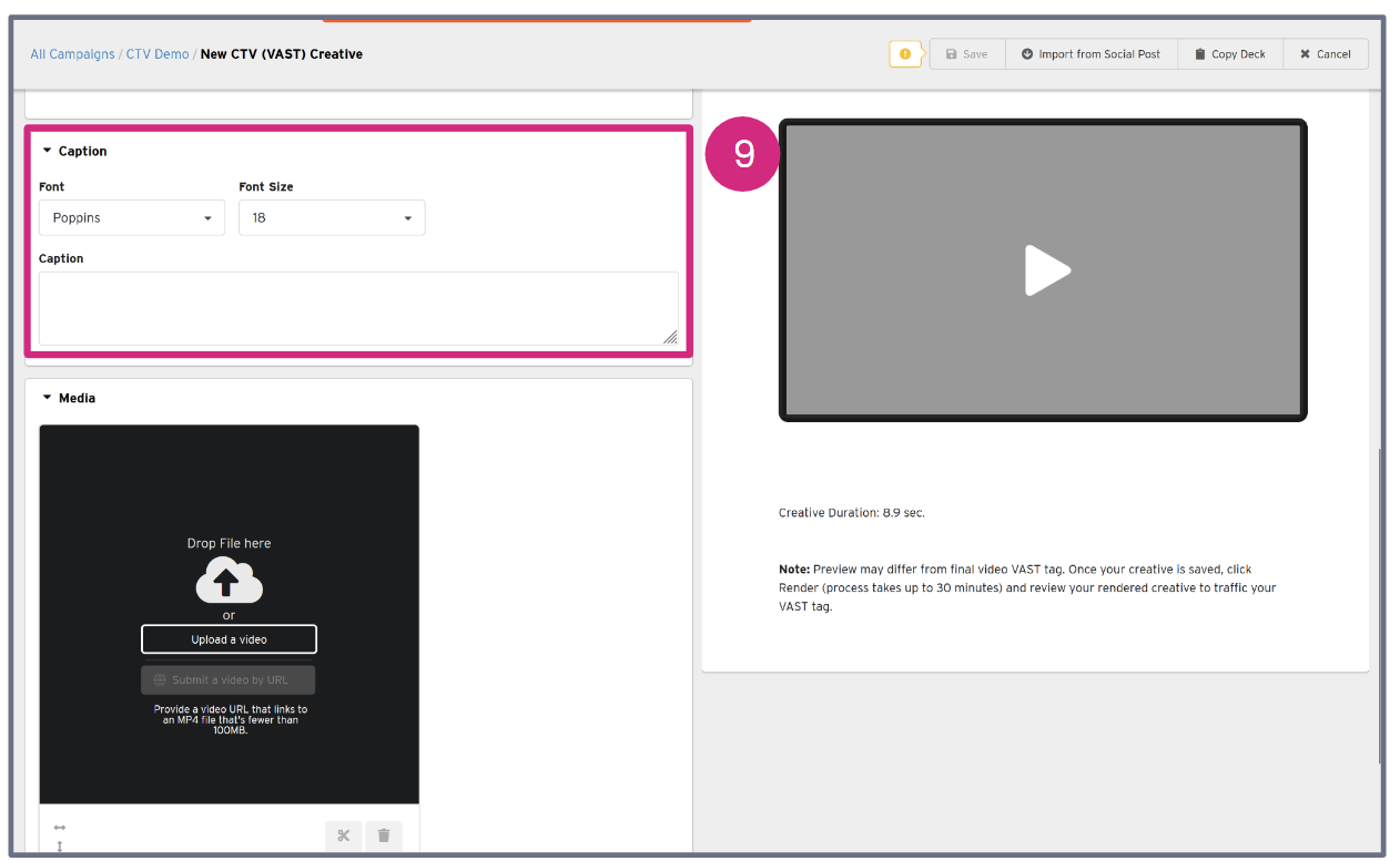 For Best Practices, keep the caption/CTA short so the viewer is able to read them. Also, remove any hashtags from the caption as they don't really fit in the CTV environment.