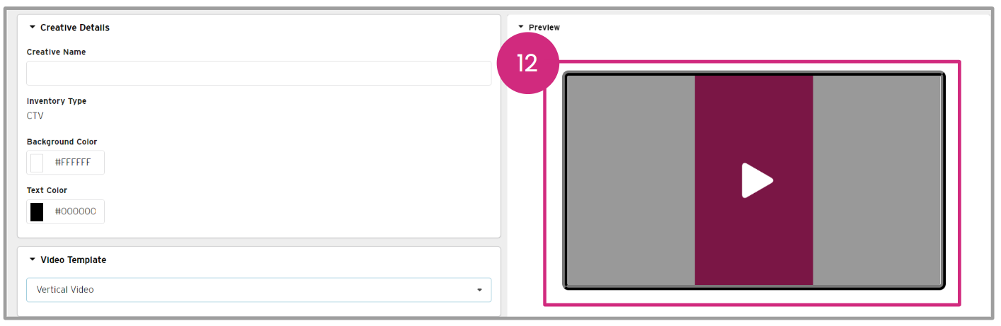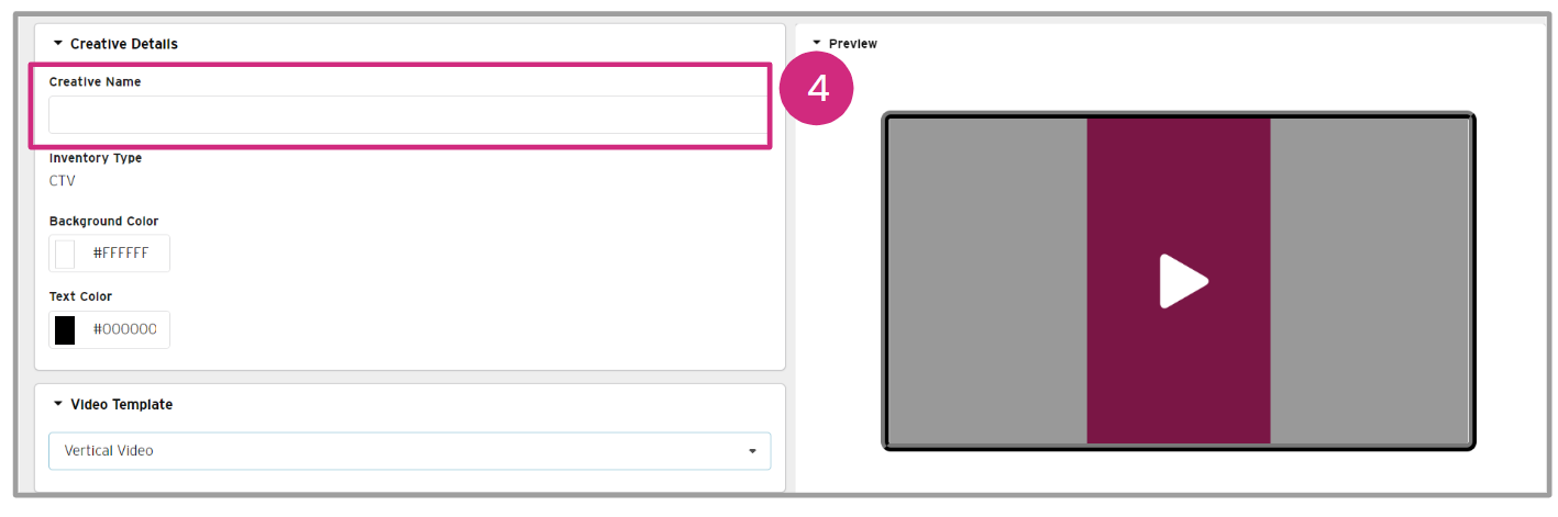 - Add Creative Name in Creative Details. Optional: Select Background Colour and Text Colour if desired.