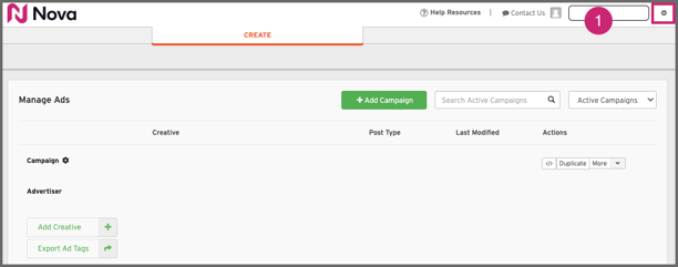 - When you're logged into Nova UI, click on the gear icon in the top right corner of the page