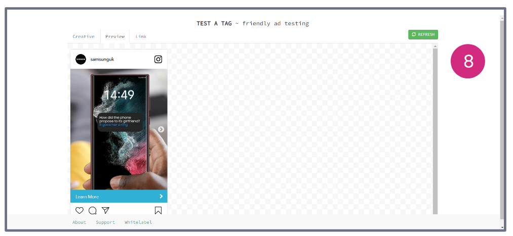 To confirm everything is set up properly make sure to Preview using test-a-tag.com or the respective DSP preview.