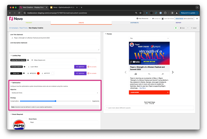 - You can update the Strategy any time during the campaign even after saving the creative.