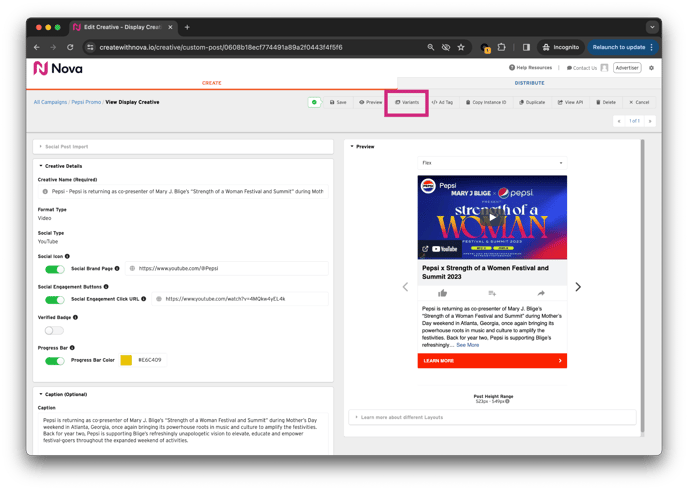 - Variant Preview Button - Preview a particular creative variant if desired (opens a variant page).