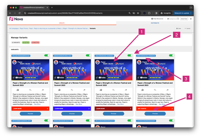 - Variant Toggle - Enable/disable a particular creative variant if desired.