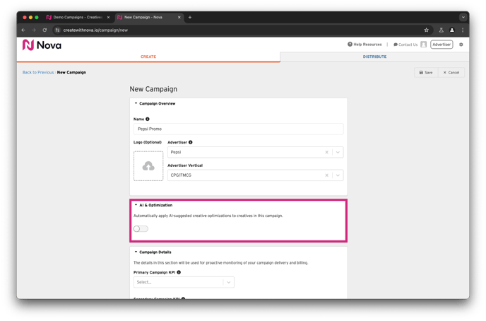 Step 2: In the campaign overview, navigate to the 'AI & Optimisation' section and switch the toggle button off.