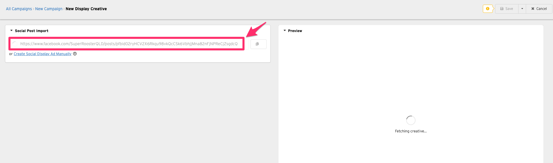 - Copy this URL and paste it in the Nova platform to create the creative via social import (auto-fill)