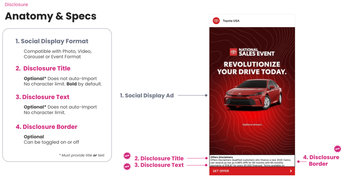 We now support Extended Disclosures Overlays on Social Displays, enabling the inclusion of regulatory or critical information without compromising visual appeal.