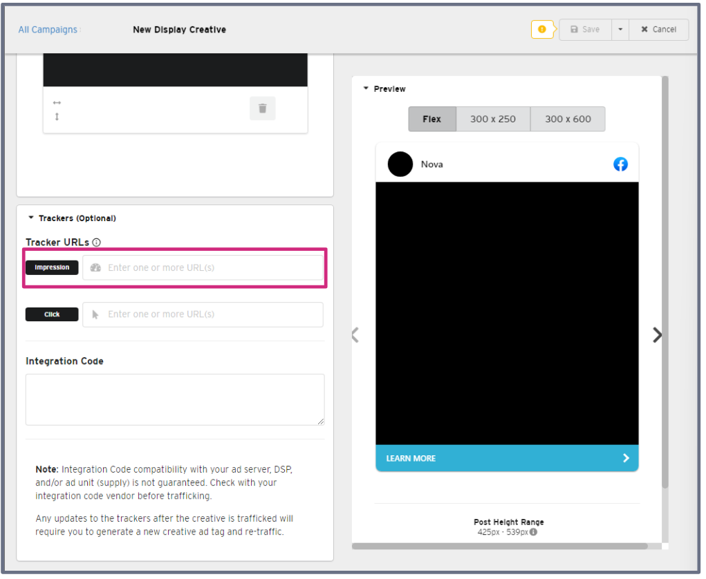 How to Add Impression Trackers in Social Display Creative