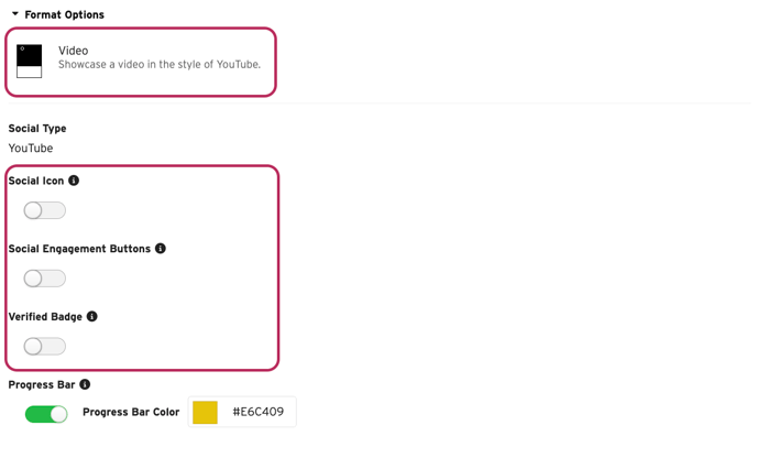 Select Video Format and Turn off Social Icons and Engagement Buttons