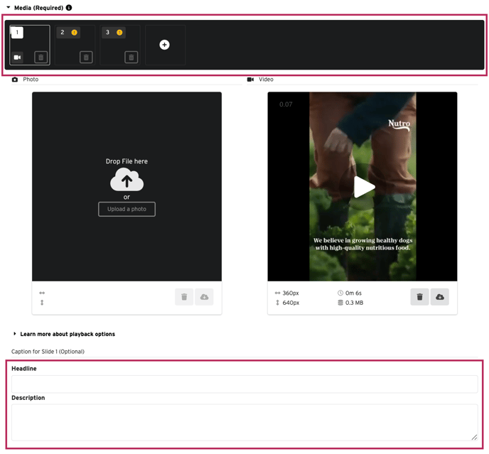 Keep the headline and description fields blank. You have the flexibility to include multiple assets if required.