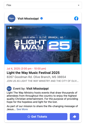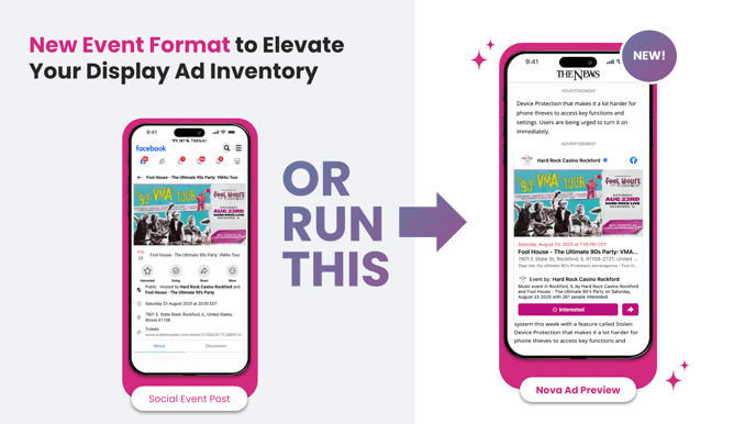 Event Post format in Nova UI allows you to effortlessly transform a Facebook Event post into a social display ad for the open web all in just a few clicks!