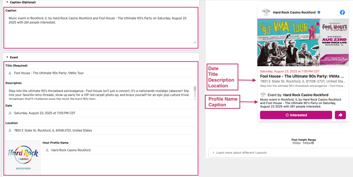 - Caption (Optional) - Additional text to highlight the event.