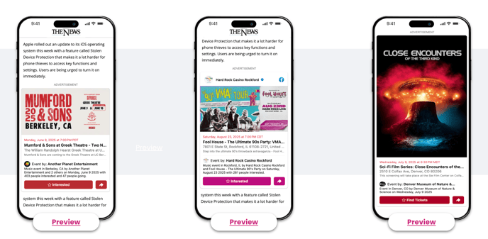 - Auto-Populate Ad - Event details (title, date, location) are automatically filled in from the event URL.