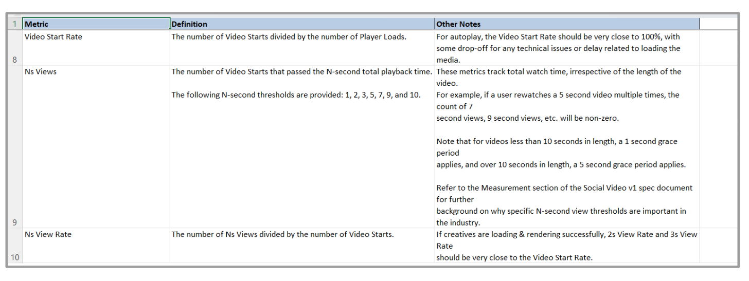 | Ns View Rate | The number of Ns Views divided by the number of Video Starts. |