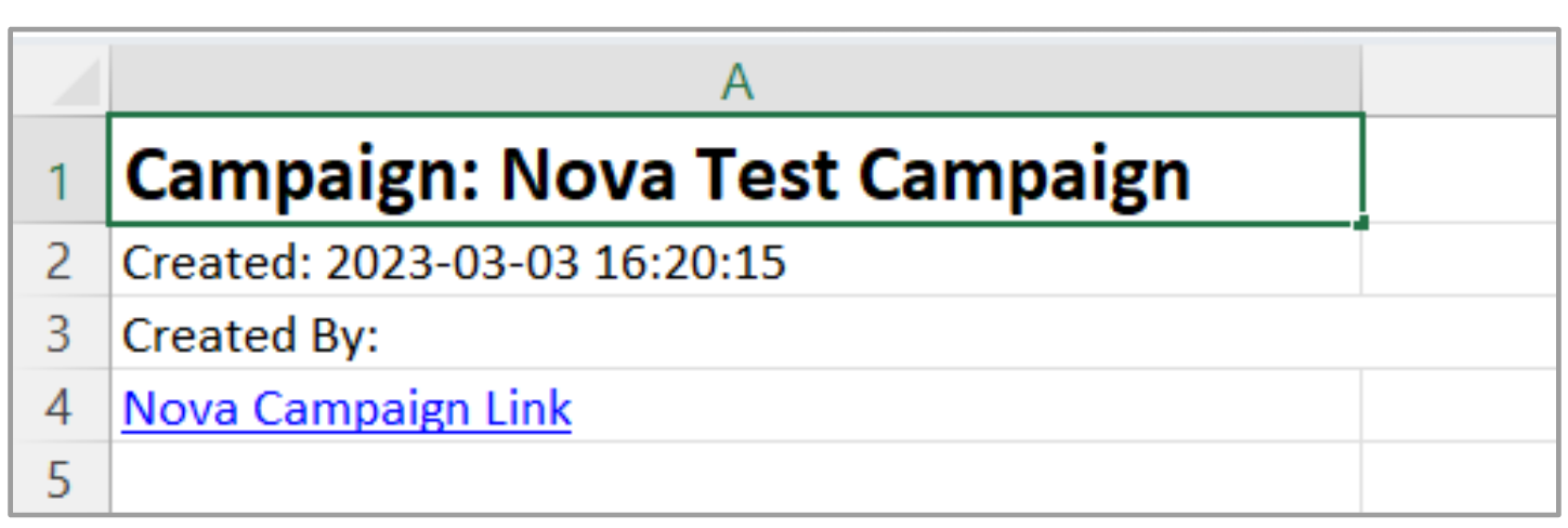 - The Campaign section includes campaign Name, creation date, the email address of the campaign creator, and the campaign link