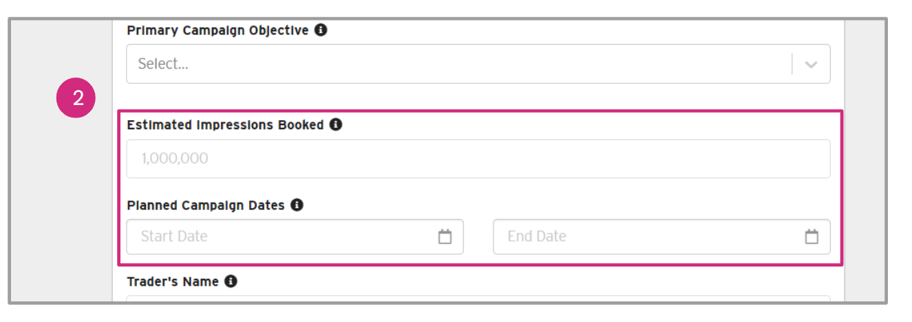 Note: It's important to note that the absence of information will not impact campaign delivery or billing. These fields are intended solely to improve our campaign learnings and optimize performance.