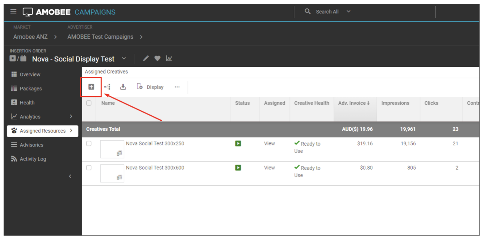 - Select the + button on the creative page
