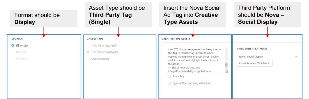 - Insert Nova social Ad Tag into Creative Type Assets