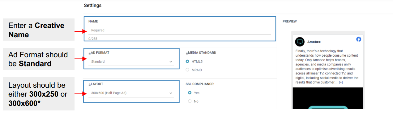 - Ad Format should be Standard