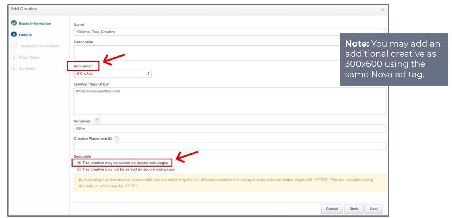 - Under Securable select This creative may be served on secure web pages