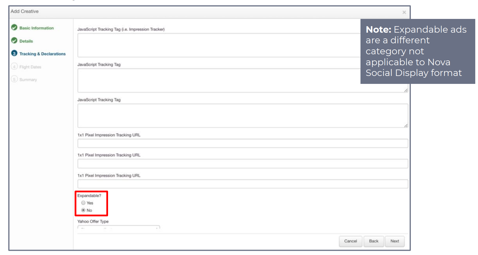 - Select No for Expandable?
