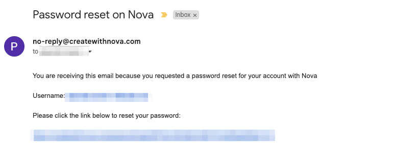 If you are still having trouble resetting your password or if you have not received an email, please reach out to us by sending your request to support@createwithnova.com