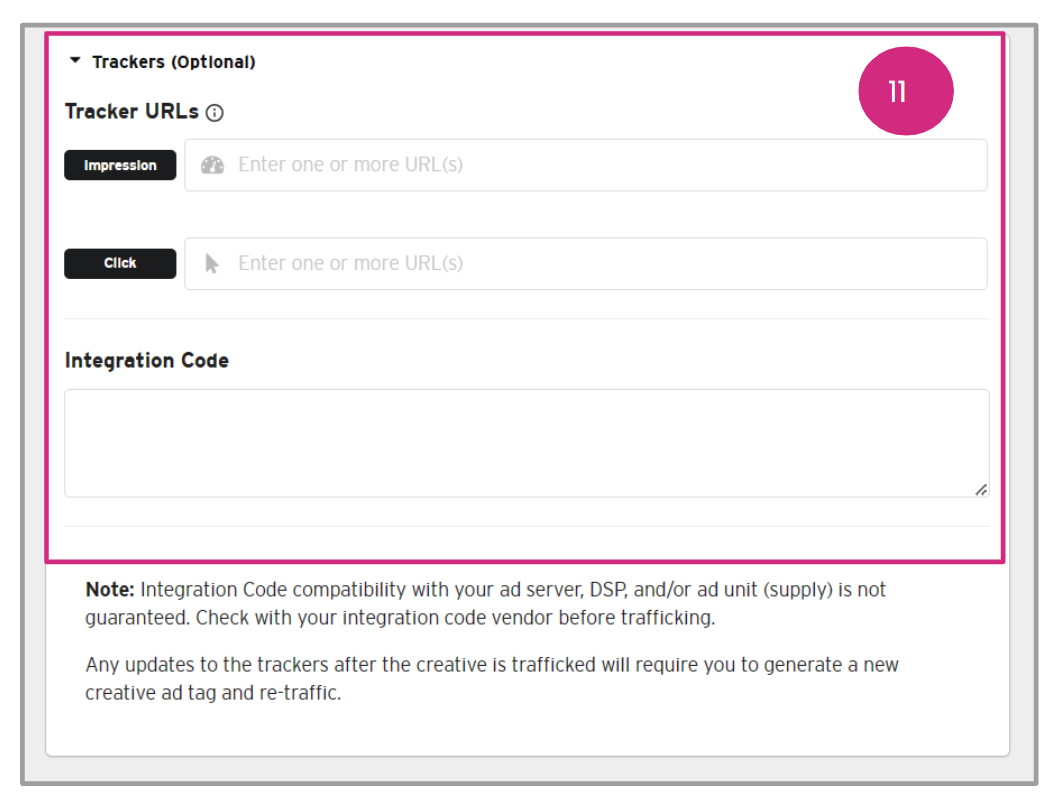 count is consistent with GAM impressions. - As with Carousels, users may add click trackers per slide by adding the click tracker in the Landing Page URL field. This will track clicks on individual slides and the total click numbers will be different at client end compared to GAM because GAM only tracks 1 click per impression of the whole story. Users may also choose to use 1 click tracker for the whole story by adding it to the Click tracker field. In that case the total click numbers will match closely (given a 5% discrepancy max) with GAM click numbers because that will also track 1 click per impression.