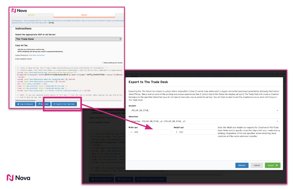 With this feature, you no longer have to manually copy & paste Nova ad tags into TTD, saving you time and effort.