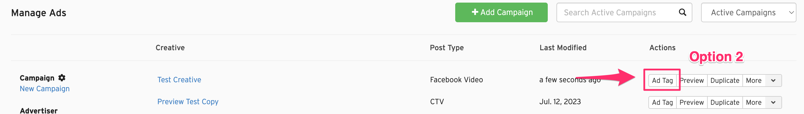 - Navigate to the ad tag for the creative: